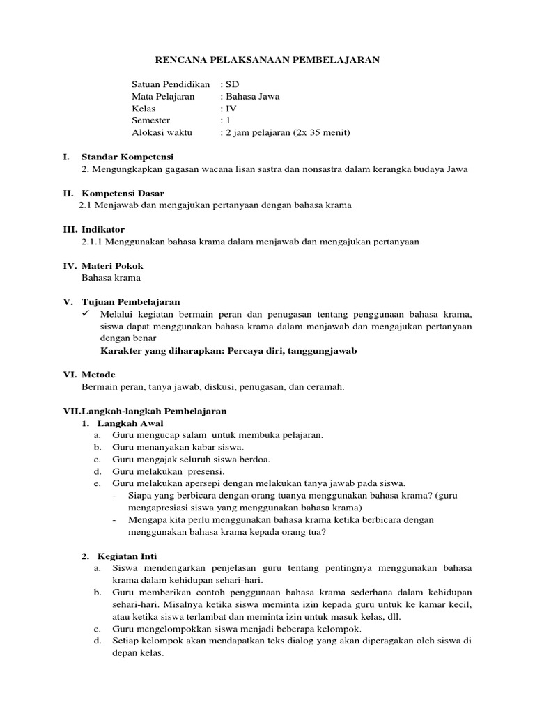 Komputensi inti bahasa jawa kelas 1 dan 4 semester 1 dan 2 2. File yang dapat dipergunakan mulai dari semester 1dan semester 2 dapat dipilih dan diunduh pada menu pilihan berikut ini: Salah satu file yang harus setiap guru siapkan sebelum melaksanakan kegiatan pembelajaran yaitu silabus dan rpp rencana pelaksanaan pembela. Mampu mendengarkan dan memahami berbagai wacana lisan melalui mendengarkan pesan, ungkapan, cerita, dongeng, atau percakapan sederhana (mendengarkan). Silabus pembelajaran bahasa jawa kelas ii sd standar kompetensi :